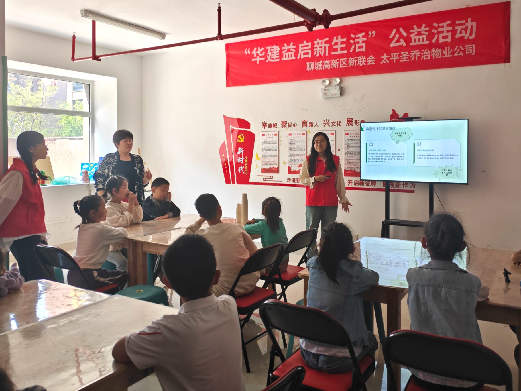 为传递科学与社交融合理念,助力自闭症儿童更好地融入社会,4月26日,聊城大学小雏菊青年志愿者协会于聊城大学“高新益站”开展“纸杯传声,趣探声秘”社会实践活动,郭兴怡、刘宇轩等8名志愿者与小朋友们共探纸杯传声的奥秘。