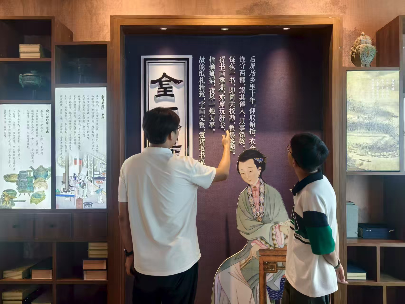 在纪念馆专业讲解员的引导下,志愿者们依次参观了李清照生平事迹展厅,通过观摩实物展陈与图文资料,系统了解了词人在青州期间的生活轨迹与文学创作历程。在诗词作品陈列区,志愿者们全神贯注聆听讲解,积极提问并深入剖析易安词作的艺术特色与文化内涵,展现出严谨认真的学习态度和主动求索的精神风貌。通过沉浸式体验传统文人的审美意境与精神追求,志愿者们不仅深化了对宋词文化的理解,更在全程活动中表现出良好的团队协作意识与志愿服务素养,有效发挥了文化传播使者的积极作用。