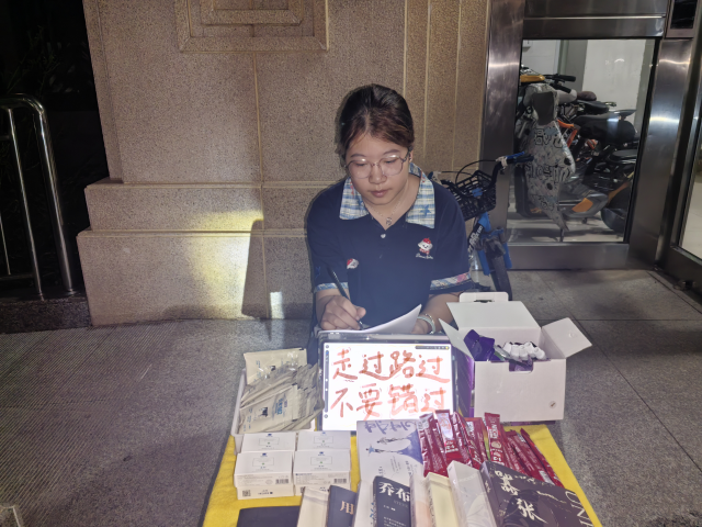 活动当天,服务队成员提前明确经营品类,精心构思吸引顾客的宣传语,在划定区域将商品摆放的井然有序,静静等待顾客的到来。他们不仅热情地向过往行人介绍商品的特点和价格,还积极互动,解答顾客的疑问。有的成员利用创意的宣传语和有趣的互动游戏吸引顾客驻足,使得摊位前人头攒动,热闹非凡。在售卖过程中,成员们深切触摸到地摊经济的蓬勃活力,切实到其中暗藏的挑战,更细致捕捉到不同地点、不同时段里顾客需求的微妙差异。