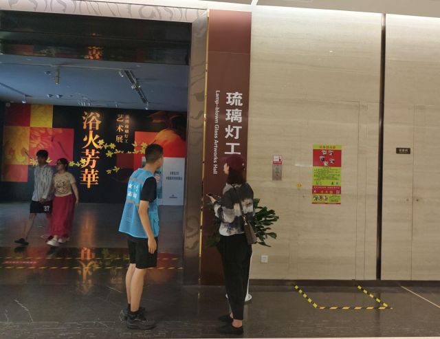 为了让参与者更直观地感受传统技艺与现代科技的碰撞,服务队成员带领大家体验了博物馆的VR剧场,一边科普VR技术的发展历程与核心知识,一边引导众人沉浸式“走进”古代琉璃工坊,在虚实交织中触摸非遗传承的新可能。