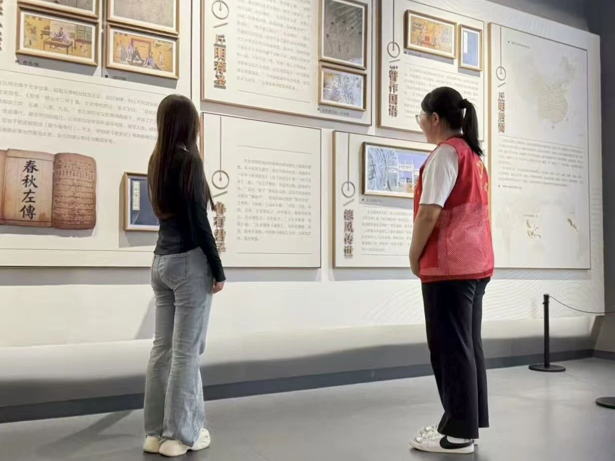 实践队前往肥城左丘明博物馆,在讲解员的引导下走到展柜旁,借射灯细看《国语》复刻本,指尖点过泛黄书页上的字句,感受“史家鼻祖”失明著述的坚守,读懂“君子之邑”的精神传承。