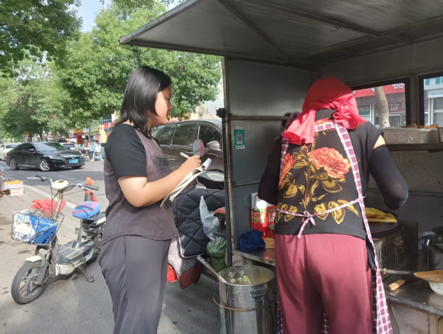 活动当天,服务队成员深入夜市展开扎实调研,他们精准把控访谈节奏,围绕经营成本、盈利模式、政策体验等核心议题与摊主进行深度对话。手工饰品摊主娓娓道来货源筛选时坚守的严谨标准,吃摊主分享凌晨采购新鲜食材的日常坚持,和依据季节灵活调整出摊时间的经营智慧。一问一答间,一个个生动的创业故事渐次展开。服务队成员用镜头定格的各摊位的独特风貌,以及抓拍的摊主与顾客互动中的温暖瞬间,让每一份奋斗的印记都变得具体可感,为调研增添了鲜活的底色。