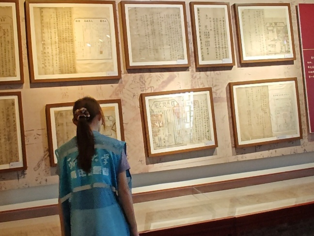 活动当天,团队成员重点参观了馆内珍藏的清代地契、民国租约等珍贵文物,系统了解了农耕契约的起源、书写格式及其历史演变。从详细记录土地面积与交易价格的手写地契,到明确租种期限与收成分配的租佃文书,这些泛黄的实物资料不仅是传统农业生产关系的重要见证,更彰显出古人“守信重诺”的契约精神。成员们认真聆听讲解,细致观察文物细节,记录关键契约信息,并围绕“契约如何保障农民权益”“不同时期契约形式的差异”等问题展开了深入交流。