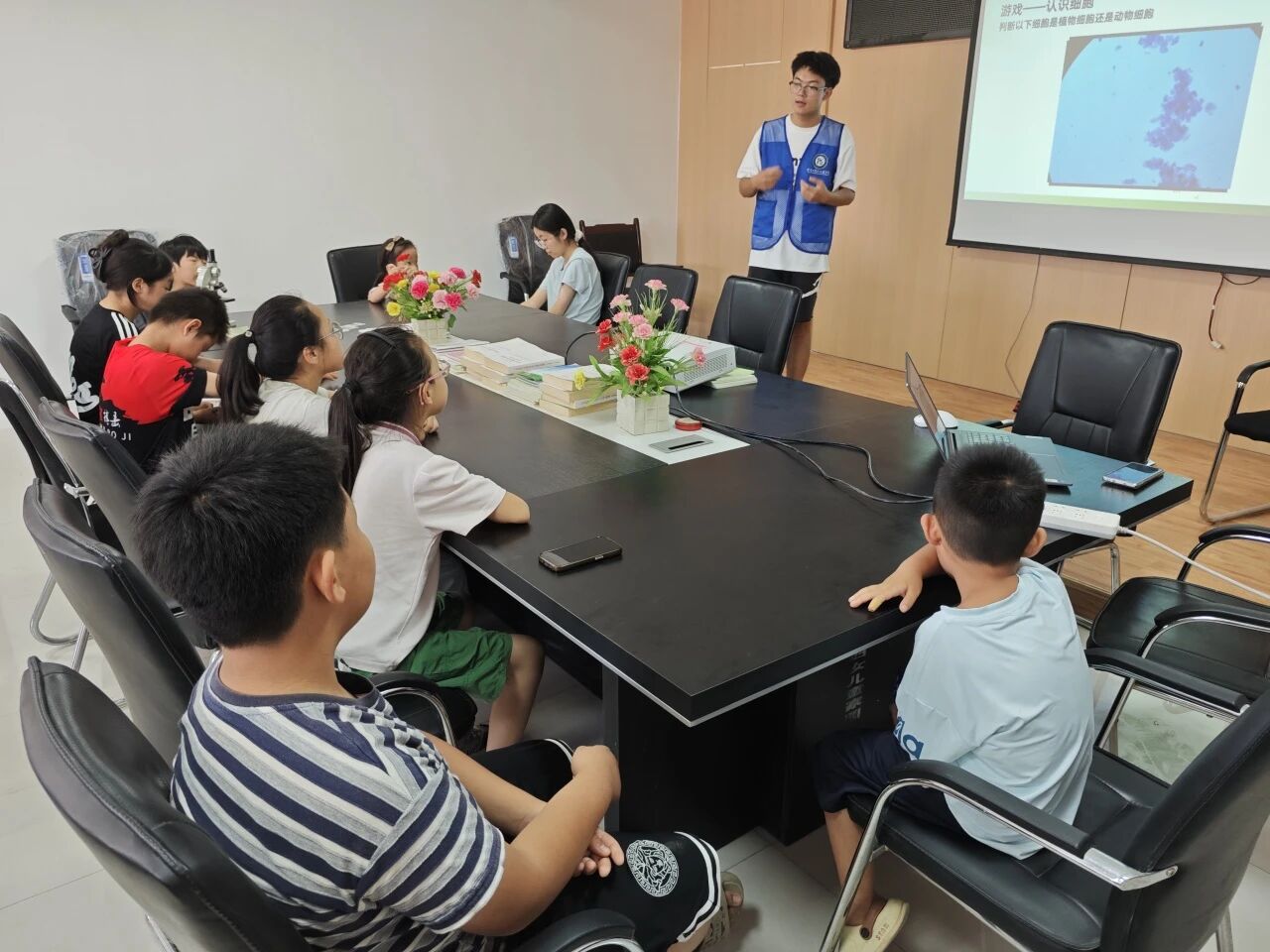 为解决小朋友们对显微技术与生物知识的认知问题,帮助小朋友们掌握显微镜的基础应用逻辑,8月2日,聊城大学药学与食品工程学院红药先锋志愿服务队于聊城市阳谷县郭屯社区举办以 “显微生灵奇遇,微观世界寻踪” 为主题的社区实践活动。