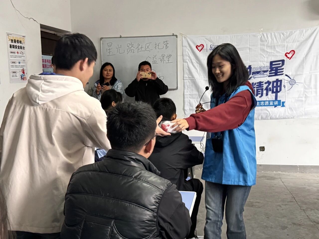 为传承和弘扬“两弹一星”精神,厚植青少年家国情怀与科学素养,10月18日,物理科学与信息工程学院“两弹一星”宣讲团走进星光路社区,为社区青少年开展了一场生动深刻的宣讲活动。作为全国“两弹一星”宣讲系列活动的重要组成部分,本次活动以通俗易懂的形式搭建起科学与青少年之间的沟通桥梁。刘秉函作为本次活动的宣讲员。