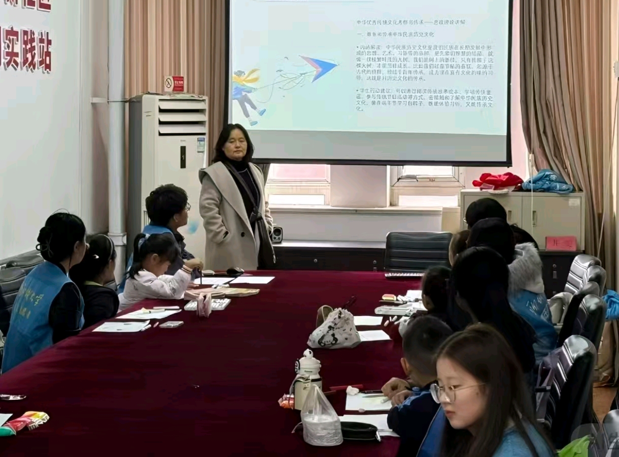 活动伊始,志愿者与孩子们以庄重饱满的姿态合唱《我们是共产主义接班人》,将红色基因传承与传统文化弘扬紧密结合,锚定新时代青年传承中华优秀传统文化的使命与方向。本次活动特别邀请马克思主义学院王桂菊老师参与,在“思政小课堂”环节,她围绕“中华优秀传统文化考察与传承”开讲,从三个维度阐释“尊重和传承中华民族历史文化”的核心要义、剖析历史虚无主义的错误本质、解读中国精神的丰富内涵,实现思政教育与文化传承的同频共振。绘画环节,志愿者引导孩子们结合对传统节日的认知进行创作,以画笔具象化传统节日内涵与文化符号,让文化认知转化为可视的艺术作品,同时设置互动问答环节,通过“答题+奖励”机制,激励孩子们主动学习传统文化知识,强化文化常识储备,现场气氛热烈融洽。活动结束后,志愿者与孩子们亲切交流,收集意见并复盘细节,后续将结合反馈优化活动形式,让文化传承的实践更贴合青少年需求,更具温度与实效。