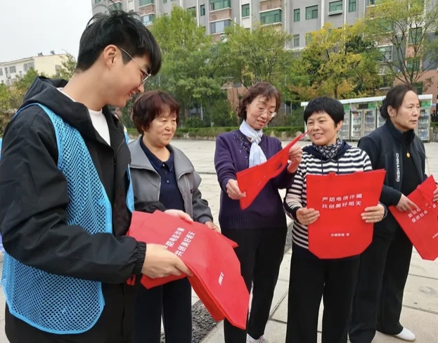 活动伊始,志愿者们与老人一对一结伴,陪伴老人们开展健身活动。志愿者们耐心细致地讲解动作要领,保证锻炼既安全又有效,遇到行动不便的老人,志愿者还主动搀扶,用贴心举动拉近与老人的距离。随后,社区还特别邀请专业的锻炼老师现场指导,结合老年人关节退化、肌肉力量薄弱等生理特点,针对性组织易筋经练习,志愿者与老人一起学习,互相纠正动作、彼此鼓励,帮助老人们科学的锻炼。此外,志愿者们还向老人们发放了印有“防范电信诈骗”字样的手提袋,并结合真实案例,用通俗的语言讲解电信诈骗的常见套路,帮助老人学会辨别、识破诈骗,保障老人们的财产安全。活动尾声,志愿者与老人们共同合影留念,同时叮嘱老人们要关注自己的身体状况,适度锻炼、合理饮食,以健康的姿态安度晚年时光。