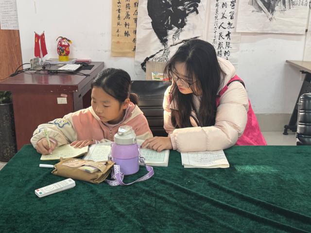 志愿者利用科普图片和动画视频,以生动形象的方式向儿童传授关于宇宙奥秘、动物世界、成语典故等多方面的知识,并穿插趣味提问。儿童们踊跃举手作答,眼神中充满对知识的渴望和热情。学业辅导互助环节,志愿者进行分组教学,开展一对一或一对二的精准答疑,耐心为儿童讲解数学难题、梳理语文课文知识点,同时分享错题本整理和高效背诵等实用技巧。志愿者俯身倾听儿童的需求,不仅细致地拆解学习中的问题,还帮助儿童理清解题思路、掌握高效的学习方法。