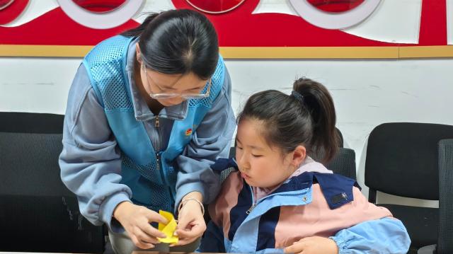 活动伊始,志愿者们借助图片资料,围绕感恩的定义、感恩的行为、感恩的意义三个方面展开论述,指出感恩是回报社会、传递亲情的方式,向小朋友们详细阐释了感恩滋润心田的作用,引出康乃馨是承载着祝福的众神之花,寓意对母亲的爱与尊重,进一步激发小朋友们的兴趣。手工制作环节,志愿者为小朋友们展示了康乃馨折纸成品,详细介绍并示范了折叠步骤,同时强调使用工具时的注意事项,小朋友们在志愿者的悉心指导下,依照步骤用彩色卡纸精心制作康乃馨花朵,展现出极高的参与热情。他们认真地按压折痕、调整角度,历经对折、裁剪、塑形等工序,一朵朵色彩鲜艳的康乃馨在小朋友们手中竞相绽放。
