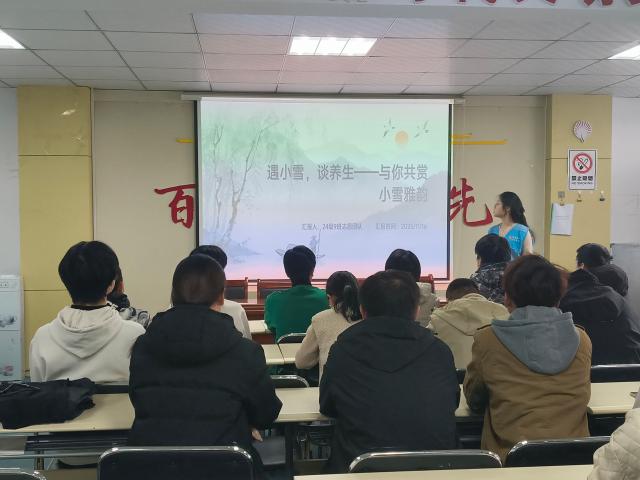 活动开始,志愿者以小雪节气的文化精髓为核心,结合鲜活的PPT演示与主题短片,系统展现了小雪节气的深厚文化底蕴,同时针对节气特点科普冬季养生知识,让居民在领略传统节气魅力的过程中,清晰认识到节气与健康的紧密联系。随后,志愿者选取“初雪漫空疑有絮,晓霜沾地欲生冰”等经典诗作,细致解读诗句中的雪景意象、清冷意境及诗人的心境寄托,带领居民一同品味诗词里的小雪韵味。社区老党员与文学爱好者们踊跃参与活动,纷纷分享自己熟知的小雪相关诗作,大家现场吟诵品鉴、热切探讨,字里行间的冬日意趣让氛围格外热烈。活动接近尾声,居民们围坐一堂,兴致勃勃地畅谈记忆中的小雪习俗,分享与节气相关的家庭温情故事,尽显和谐融洽的社区氛围。活动结束后,参与的志愿者们纷纷表示,这次实践不仅让自己对小雪节气的传统文化有了更深刻的认知,更切实感受到了志愿服务传递温暖、拉近心距的价值。