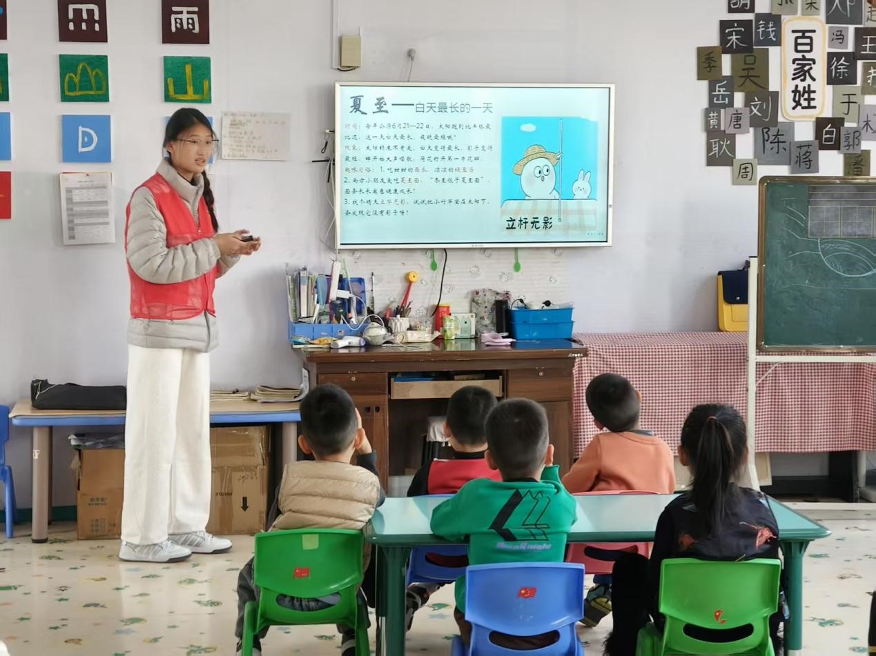 活动现场,志愿者们依托精心制作的PPT,以四季为脉络,对立春、夏至、大雪、冬至等典型节气进行深入浅出的讲解。讲解过程中,志愿者们巧妙地将歌词中的节气与对应的气候特征、物候现象及民间习俗相联系,并穿插趣味问答,使孩子们在寓教于乐的互动中,将旋律记忆转化为具体认知,深化了对节气文化内涵的理解。