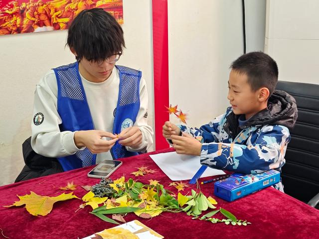 实践体验环节中,志愿者们带领小朋友触摸植物叶片与枝干,指导大家通过叶片形状、叶脉纹路、花朵形态等特征辨别植物种类,鼓励孩子们相互交流观察心得与甄别技巧,在亲身体验中深化知识记忆。随后的书签制作环节,志愿者们耐心指导小朋友运用落叶、字典、透明胶带等工具,将形态各异的落叶塑封成独特的自然书签。小朋友们充分发挥想象力与创造力,精心搭配叶片、设计造型,在动手实践中感受自然之美,同时将自然探索与阅读乐趣巧妙融合。活动尾声,全体参与人员合影留念,镜头定格下孩子们手持自制书签、洋溢着自豪与喜悦的笑脸。