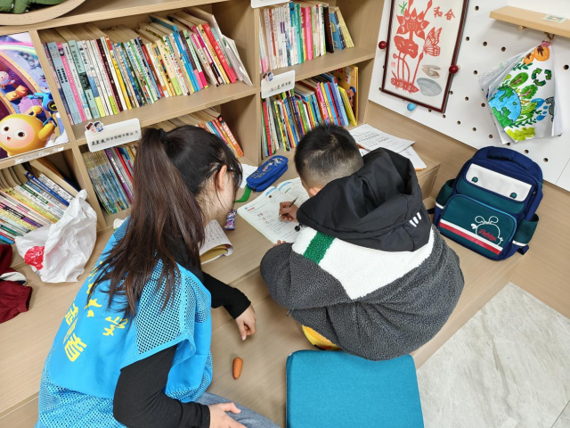 志愿者们早早地到达服务地点,细心准备好服务过程中需要用到的物品,为即将到来的小朋友们制造了一个温馨的氛围。小朋友们陆续到来后,志愿者们便针对不同小朋友的学习情况对症下药:碰到数学计算卡壳的小朋友,就拿起草稿纸画图演示,还举着桌上的文具举例,让抽象的数字变得鲜活;遇到语文生字书写不规范的小朋友,便弯下腰手把手纠正握笔姿势,用生动比喻引导规范书写,让知识点在欢笑中扎根。面对学习节奏稍慢的小朋友,志愿者们俯下身轻声鼓励,驱散他们的畏难情绪;对于学有余力的小朋友,就抛出拓展问题引导自主探索,还分享错题本整理等实用学习技巧,帮助小朋友更好地学习。活动现场暖意融融,小朋友们执笔凝神,在纸上认真书写,遇有困惑便高高举起小手,志愿者们即刻俯身倾耳,轻声细语地答疑解惑,温暖的手掌轻拍肩头,传递着鼓励与肯定。“这次志愿服务,志愿者们认真负责,也减轻了我们辅导孩子的负担!”一位家长说道。