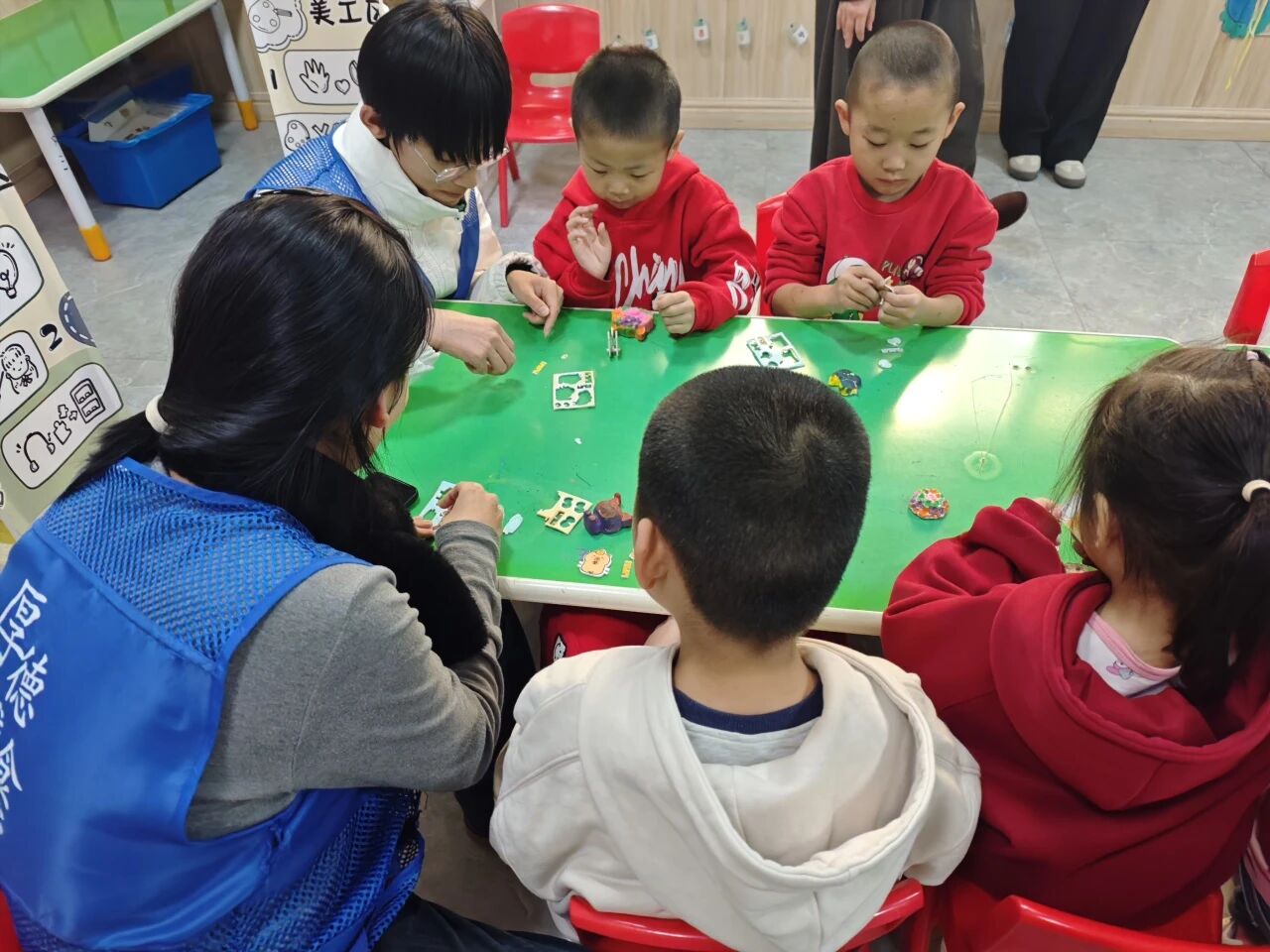 活动伊始,团队成员以国际志愿者日为背景,结合生动详实的案例,向小朋友讲解了志愿者的定义、核心精神与时代价值,引导他们初步建立对志愿服务的认知与认同。随后,团队成员进行了粘土手工制作教学,他们向小朋友介绍了粘土的基本特性,如何揉捏、塑形以及如何使用各种工具来雕刻细节,并耐心引导小朋友完成粘土制作,他们细致地纠正小朋友在塑形时出现的小错误,鼓励小朋友发挥想象力大胆尝试不同的造型和颜色搭配。活动结束后,幼儿园老师们纷纷表示,这次活动把志愿精神具象化,让小朋友了解了志愿者的含义,在他们心中播撒下了乐于助人、甘于奉献的种子。
