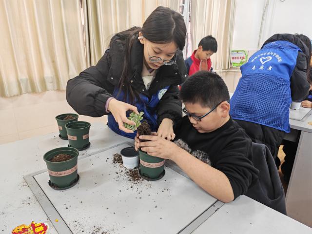 为让特殊学生感知植物生长的奥秘,锻炼动手实践能力,丰富课余生活与感官体验,同时传递对特殊群体的关怀与温暖,12月14日,新农科技社的志愿者们于聊城市特殊教育学校举办特殊学生多肉种植体验公益活动。