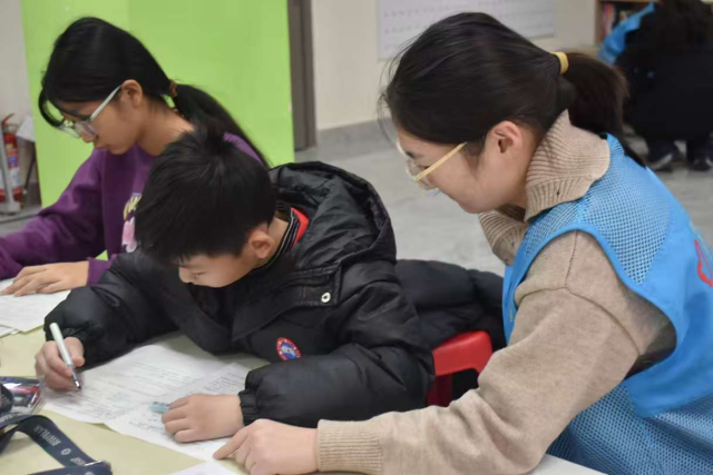 活动开始前,志愿者们提前抵达社区活动室,迅速投入准备工作:擦拭摆放桌椅、分类整理各科学习资料,同时与社区工作人员对接,详细了解小朋友们的年级、学习基础及作业难点,为后续辅导做好充分准备,一切布置妥当后,志愿者们静静等候小朋友们的到来。在辅导作业环节,志愿者们以一对一的辅导模式坐在小朋友们身旁,化身“小老师”陪伴他们攻克作业难关。面对语文阅读题,志愿者们引导小朋友逐句分析文意,圈画段落中的关键信息,手把手教他们梳理文章脉络、提炼中心思想的方法;碰到数学计算题,志愿者们则用草稿纸一步步拆解解题步骤,细致讲解公式的推导与运用技巧,分享估算、验算的实用技巧;遇到英语单词和句型难题时,志愿者们带着小朋友大声朗读,通过趣味联想帮助他们记忆词汇。活动全程,志愿者们坚持循循善诱,不断启发小朋友独立思考。同时,活动在社区图书角特设读书分享环节,这里陈列着科普绘本、经典童话、自然百科等丰富书籍。志愿者们和小朋友们围坐成圈,共同翻阅绘本,声情并茂地讲述故事里的奇妙情节。小朋友们踊跃举手,分享自己印象深刻的故事片段,积极提出疑问,志愿者们耐心解答,活动室里回荡着琅琅书声与欢快的笑声。