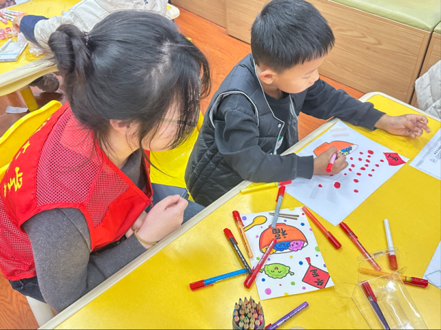 随着活动的深入,孩子们在绘画环节中尽情释放想象力。在团支部成员的引导下,他们以雪花、炉火、饺子等冬日元素为灵感,运用卡纸与彩笔绘制出一幅幅充满童趣的“冬至画卷”。现场创作氛围热烈,笔触间流淌着孩子们对传统节气的纯真感知,欢声笑语中洋溢着文化的温度与活力。