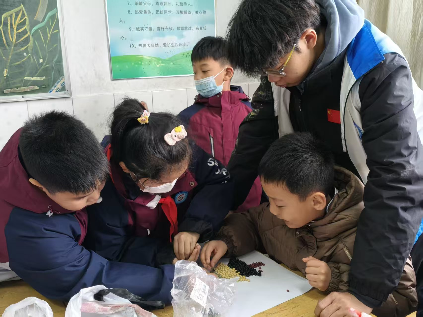 本次活动采用“趣味宣讲+动手创作”相结合的形式,志愿者通过PPT课件系统讲解了粮食的生长过程、粮食浪费的危害及日常节约的小妙招,并播放了粮食科普短视频,以直观生动的方式帮助小朋友们理解节约粮食的重要性。实践创作环节,志愿者将小学生分为四个小组,首先引导孩子们用铅笔打草稿自由构思,再指导大家以各类粮食为素材创作粮食画;志愿者深入各小组手把手传授创作技巧,让孩子们在动手实践中深化节约粮食的理念。