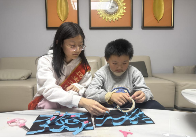 志愿者以运河生态照片为切入点,向青少年生动展示运河水域生态系统的完整构成,重点阐释“水质影响鱼类生存,鱼类反映水质健康”的依存关系,让青少年直观认识生物多样性对维持运河水质、平衡生态系统的重要意义。在手工制作核心环节,志愿者为青少年分发蓝色彩纸、硬纸板、活动眼珠、彩笔等丰富材料,指导大家将生态知识融入创作。孩子们充分发挥想象力,他们精心裁剪渐变蓝色彩纸,模拟运河水流的灵动波纹,还原运河水下生态场景。志愿者全程耐心指导,协助裁剪、拼接,鼓励青少年大胆创作,他们携手合作,共同打造出一幅大型“运河生态水世界”展示板,直观呈现运河生态的完整样貌,让抽象的生态知识变得具象可感。在分享环节,青少年手持自己的作品讲述创作思路,分享学到的运河生态知识,纷纷表示要从自身做起,守护运河碧水。志愿者也结合作品,进一步强调生态保护的重要性,引导大家将环保理念融入日常生活。