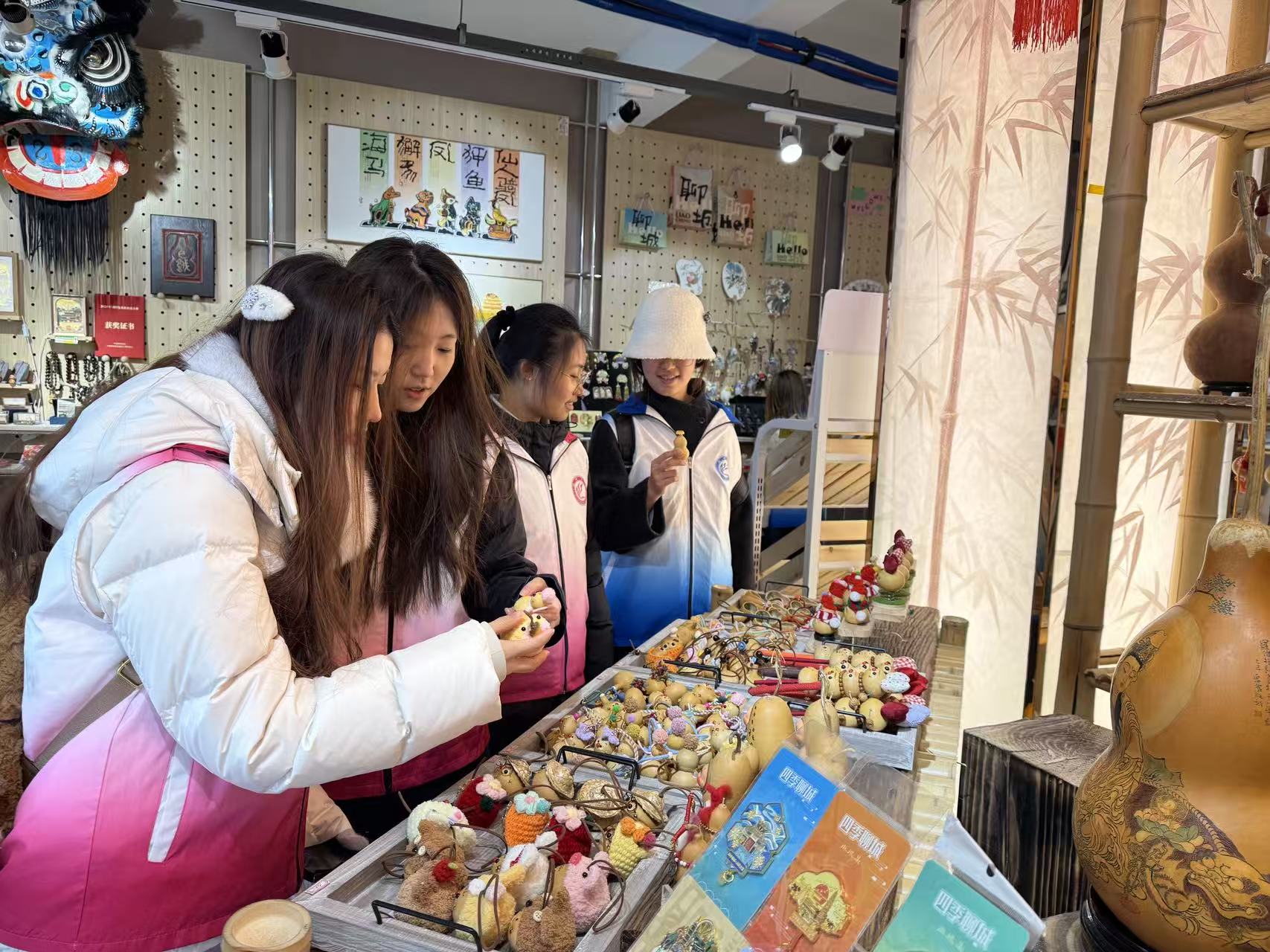 实践队员以游客体验与消费意愿为核心,聚焦光岳楼、东昌湖沿岸等核心游览区域及特色商铺街区,通过发放纸质问卷、开展随机访谈、实地走访商户等多元方式,与不同年龄层、不同地域的游客深入交流,详细记录游客在古城的游览时长、消费品类、文旅产品满意度,以及对非遗体验、文创周边等特色项目的参与意愿。与此同时,通过与古城内非遗传承人、特色小吃店主、文创商户及运营管理人员沟通,团队成员进一步梳理了客流波动、产品创新、文化赋能等经营痛点,全面收集一手调研数据,为后续实证分析积累了鲜活样本。