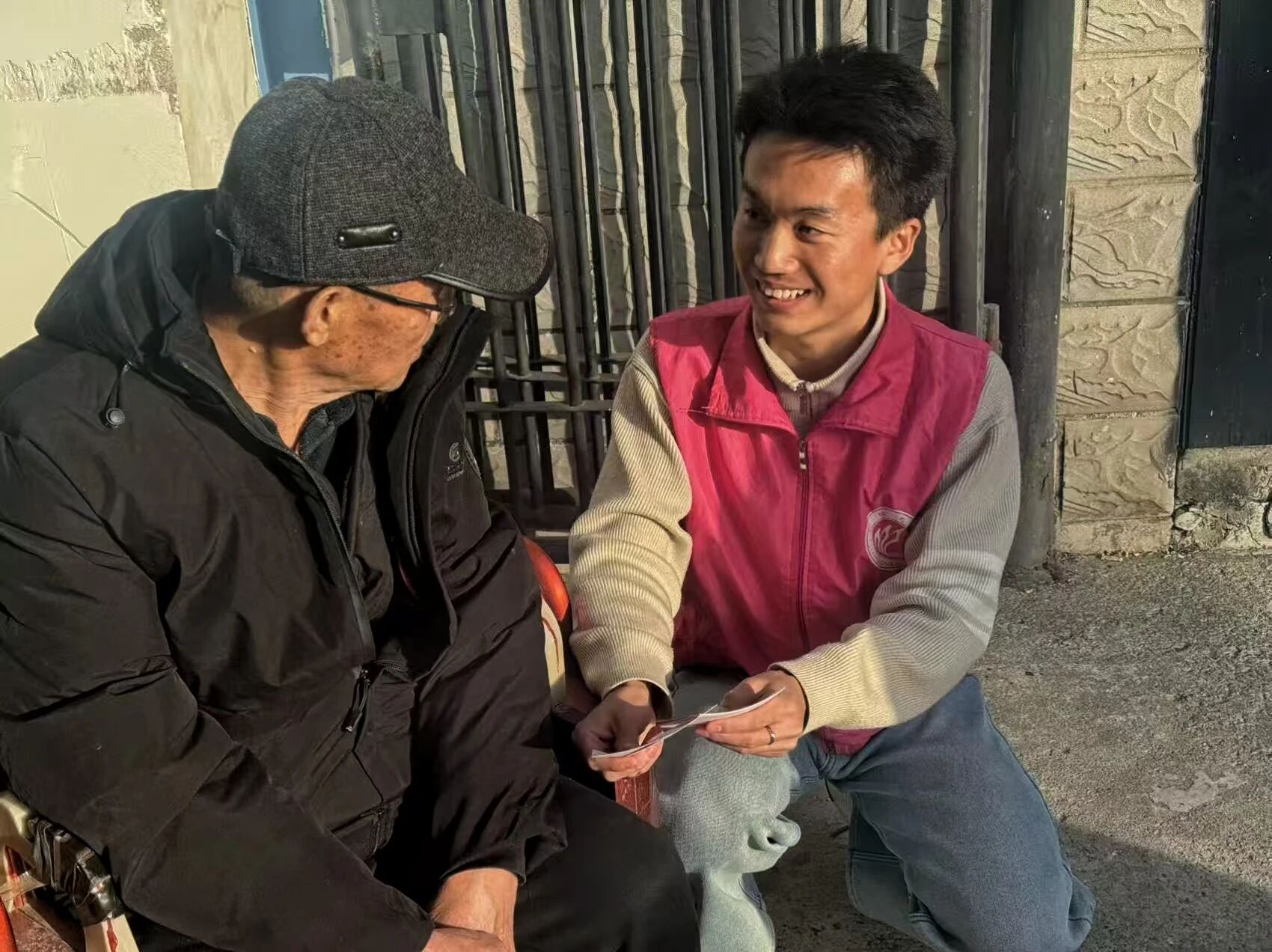 志愿者带着精心准备的安全宣传资料与实用提示卡片,深入老人家中开展实地走访与安全排查,重点对室内电路铺设、电器使用、取暖设备放置、厨房燃气使用等关键区域逐一查看,细致排查线路老化、杂物堆积、插座过载、燃气软管破损等潜在风险,针对每户实际情况,现场讲解对应风险点与防范措施。志愿者结合老年群体生活习惯与常见误区,用贴近生活的真实案例讲解防火知识,细致说明电热毯、取暖器、手机充电、厨房用火等日常场景的安全规范,把专业安全知识转化为老人听得懂、用得上的生活常识。志愿者现场指导老人正确张贴安全提示卡,手把手示范简易自查方法,帮助老人把安全意识落实到日常起居每一处细节。志愿者引导老人签订简易安全自查承诺,同步登记基本信息及主要关注点,并告知将定期通过电话或社区回访的形式进行关心与提醒,建立起长效联系机制。