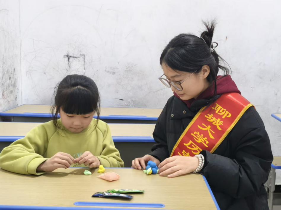 在创意黏土实践环节,志愿者为儿童分发各色黏土,手把手演示调色、塑形、刻画纹理的制作技巧,耐心指导儿童用黏土还原果蔬形态。儿童充分发挥想象力与创造力,动手创作专属黏土果蔬作品,志愿者在指导过程中同步补充相关农事小知识,进一步进一步厚植儿童的农耕情怀。在作品展示环节,儿童主动上台分享创作思路与活动所学收获,志愿者引导儿童开展互动交流,并围绕其创作的黏土作品延伸讲解农耕知识,让农耕文化在交流分享中扎根儿童心底。