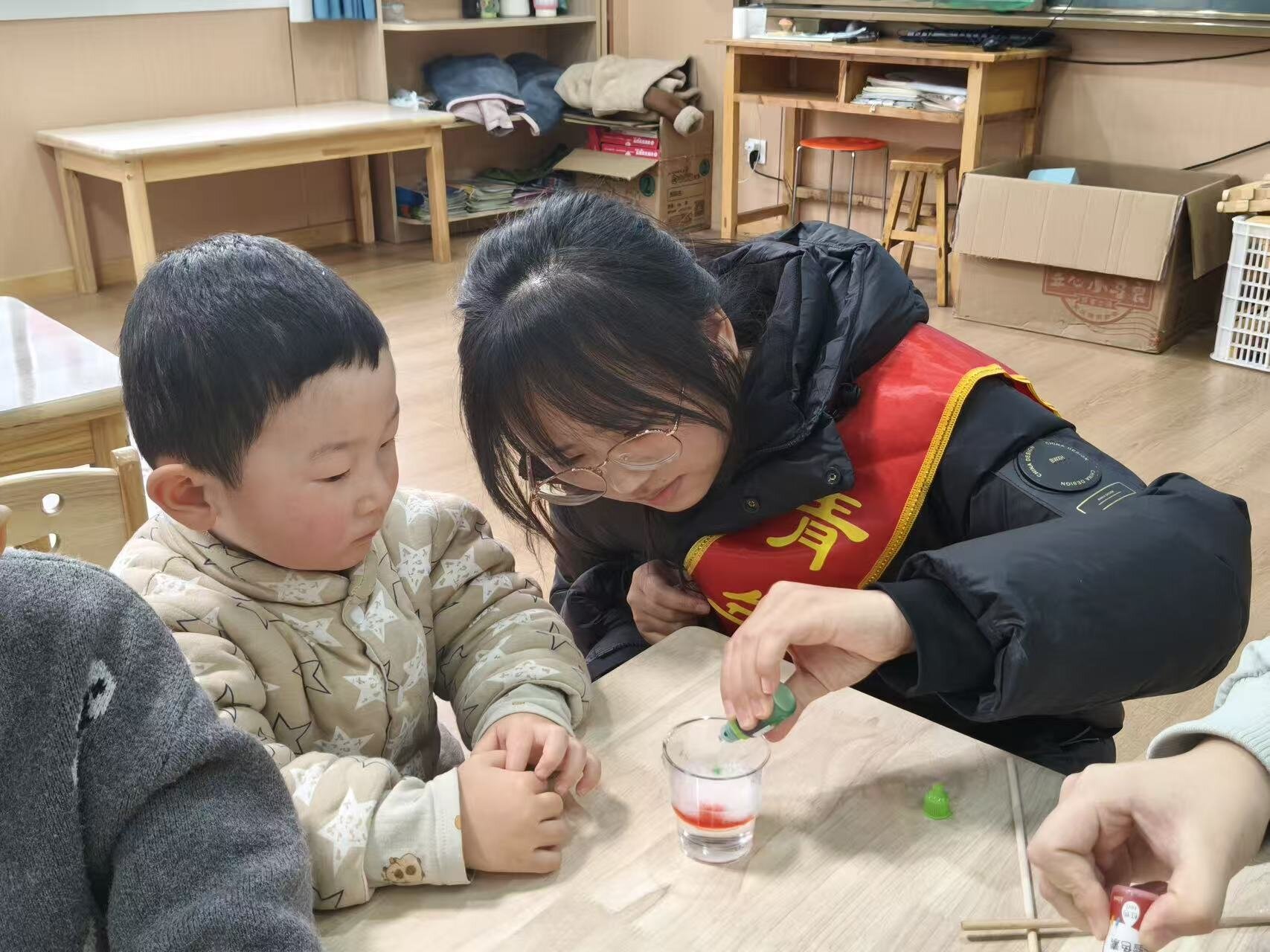 为培养小朋友们的科学思维,深化他们对流体密度与界面现象的认知,1月24日,化学化工学院光熠志愿服务队于山东省聊城市东昌府区怡景幼儿园举办“水中瀑布的奥秘”志愿服务活动。
