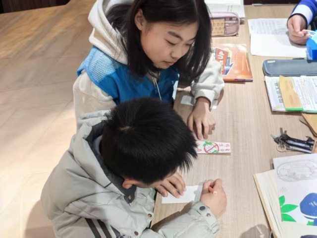 志愿者首先通过色彩鲜明、图案生动的宣传画,展示“远离毒品”“珍爱生命”“无毒家园”等禁毒标识,同时详细科普传统毒品、合成毒品及新型伪装毒品的危害,特别标注儿童易接触的风险场景与防范要点。结合真实案例,说明毒品对个人和家庭的破坏,解答儿童关于毒品种类、识别方法等方面的疑问。在手工创作环节,志愿者为参与的儿童分发卡纸、彩笔、剪刀、贴纸等材料,详细讲解禁毒书签的绘制技巧与设计思路。儿童勾勒“禁止毒品”警示符号、书写禁毒宣传标语,充分发挥创意,将宣传画上的禁毒小标识融入到书签创作过程当中,用色彩与线条表达对无毒生活的向往,让禁毒知识在手工实践中深入人心。现场氛围热烈而温馨,参与儿童积极交流,一张张创意十足的禁毒书签逐渐成型,每一笔都凝聚着对禁毒工作的支持与对美好家园的守护。
