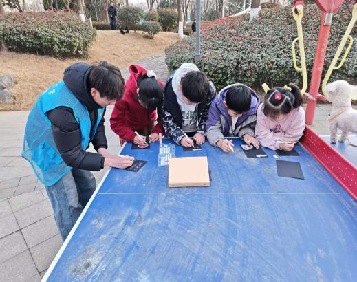 活动围绕“禁毒知识记心间,绿色青春我守护”主题展开,将手账制作与禁毒宣传有机融合。志愿者展示禁毒示范手账,讲解分板块记录方法,传授标题贴纸装饰、色彩区分知识点等基础排版技巧,帮助儿童掌握手账创作要点,并依托专属禁毒手账本自主创作。志愿者分组巡视指导,协助能力较弱的儿童完成绘画与文字填写,引导他们将所学禁毒知识转化为文字与画面,写下专属的防毒决心。儿童们认真聆听,自主发挥创意,互相分析交流创作思路。现场学习氛围浓厚,社区儿童认真书写、精心装饰,作品内容丰富、形式多样,塑造出一系列生动形象的禁毒形象和警示图案。优秀创作者登台展示手账作品,分享创作思路与防毒心得。志愿者逐一表扬作品,并为每位参与的社区儿童发放“禁毒小卫士”纪念贴纸,激励大家坚守防毒理念。