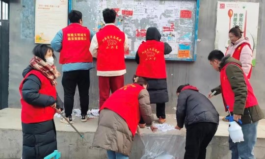 活动伊始,志愿队在社区会议室开展岗前部署。社区工作人员为志愿者们明确服务内容、划分责任区域,并强调了劳动安全与服务礼仪,叮嘱队员们在寒冷天气中注意保暖与操作规范。随后,志愿者们身穿红马甲,分工协作投入服务:一部分志愿者聚焦社区公告栏,细致清理过期通知、小广告及纸屑杂物,用抹布反复擦拭板面,让公告栏焕然一新;另一部分志愿者手持扫帚、夹子等清洁工具,对社区公共区域的垃圾进行全面清扫,重点清理了绿化带内的烟头、塑料袋等卫生死角。队员们不畏严寒、干劲十足,以实际行动践行志愿初心,不少路过的居民纷纷驻足点赞。