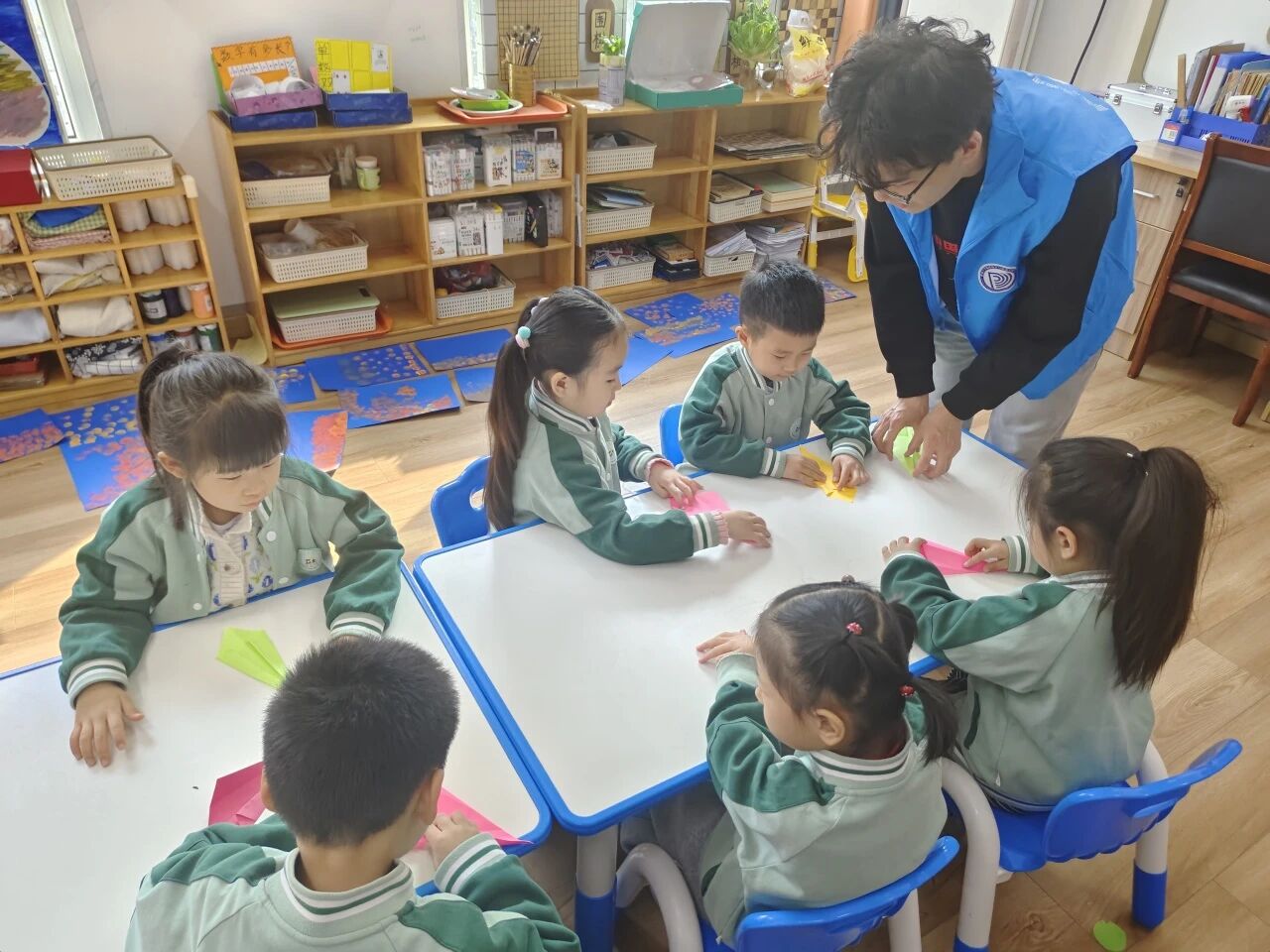 活动伊始,志愿者们以生动有趣的故事讲解和互动问答为切入点,耐心向小朋友们科普植树节的起源与意义。志愿者们从树木净化空气、美化环境、保护生态等多重维度,细致阐释了绿色植物的重要价值,将环保知识播撒进每一位小朋友的心田。随后,志愿者们分组陪伴小朋友们开展创意手工实践活动。在志愿者的悉心指导下,孩子们充分运用彩纸、黏土、画笔、树叶等丰富材料,通过折叠、揉捏、粘贴等方式,精心制作出纸艺小树、黏土盆栽、树叶贴画等一件件充满童趣的精美作品。志愿者们耐心鼓励孩子们大胆展示创作成果、分享创意灵感,在温馨互动中进一步增强了孩子们爱绿、护绿的环保意识。活动尾声,志愿者们带领小朋友们共同整理活动材料,引导大家养成爱护环境、保持整洁的文明习惯,让生态文明理念在实践中真正落地生根。