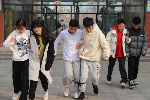 运动会共设置两人三足接力、袋鼠跳两个比赛项目。比赛规则为:同学们以两组为一队进行接力,在起点和终点处随机抽取有关一二•九运动的题目进行回答,答错一题比赛时间增加10秒。累计用时短的队伍获胜。本次趣味运动会将弘扬一二•九精神与团队接力比赛巧妙地结合在一起,让同学们在享受比赛的同时也能对一二•九运动进行深入了解。经过赛前充分的准备,在比赛过程中,各组选手动作迅速、配合默契,充分发扬团队合作精神,在各个项目中都勇争第一。在两人三足比赛中,同学们两两配合,口中为自己数着一二一的口号,以更好地达到双方步伐的一致。稍落后的同学也毫不气馁,奋力直追。观众们也为之感染,为他们加油助威、鼓掌呐喊。在答题环节,同学们利用自己丰富的历史知识,以较快的速度回答问题,他们面对每道题目都游刃有余。随后,袋鼠跳比赛将现场气氛带向高潮,同学们你追我赶,都拼尽全力奔向终点。经过激烈的角逐,每支队伍都取得了优异的成绩。最后,本次趣味运动会在欢快的氛围中落下帷幕。
