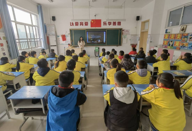 爱心支教行,冬日暖童心。徐丽以一张金城战役图为切入点,讲述了奇袭白虎团的故事,引出这节课讲解的英雄人物——杨育才。杨育才是一位人民志愿军,为抗美援朝的胜利作出了不朽的贡献。徐丽结合相关课程的教学内容,先后播放了《抗美援朝》和《金刚川》精彩片段,带领大家走进英雄杨育才的世界,感悟他的家国情怀。通过展示金城战役的地图路线和作战双方军事实力的数据对比,同学们明白抗美援朝战争过程的艰辛,作战双方力量悬殊之大,战争胜利之不易,从而牢记英雄事迹,学习英雄身上不畏艰难和有勇有谋的革命精神。在课堂结束后,徐丽解答了同学们的关于英雄杨育才的问题,同学们也都说出自己感悟,他们的话语中充满了对英雄的尊敬,纷纷表示会好好学习,把杨育才英雄当做自己的榜样。