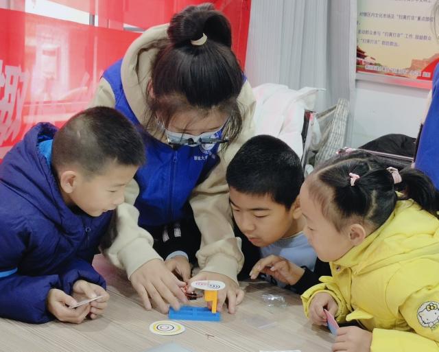 为了激发少年儿童对科技的好奇心和热情,提高他们的发展学习能力、实践能力和创新能力,在2021年12月11日,聊城大学美术与设计学院“与美同行”志愿服务协会在聊城市东昌府区新区街道华府社区举办“七彩四点半——光学转盘小制作”活动。