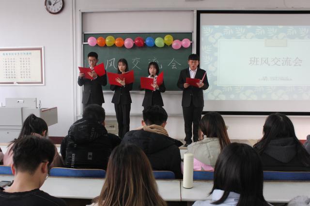 班风建设利大家,交流会上展才智。此次活动由纪检部干事集体暖场舞蹈为序幕,充分活跃了现场气氛,经主持人宣布答辩规则后,班风交流答辩会正式开始。各班级参赛选手依次上台分别就本班的班级凝聚力、学习纪律、学习效果、学习科技活动、精神文明建设活动等五个方面通过幻灯片的方式向大家展示本班的学风建设成果。其中一号班级答辩人张立凯同学开篇点题,介绍自己的班集体是一个“积极向上,崇教尚学,敦厚奋进”的班集体,详细介绍班级班风,展示班级活动;八号答辩人郅丽萍同学着重介绍了“我们的班规我们定”,通过图片展示了班级的团结友爱,展现班级魅力;九号答辩人褚渤凯同学结合文字和PPT介绍他们的班级特色:“红色班级制度”和“红色班风”。评委们依次对每个班级的规章制度依次进行点评,还向选手分享了建设班级、举办班级活动、落实班级制度过程中的经验与心得,对各班班级建设给予了鼓励与期许。评委们本着公平公正的原则为选手打分,最后主持人宣布本次答辩活动郅丽萍、甄玉珍两位同学获得一等奖。