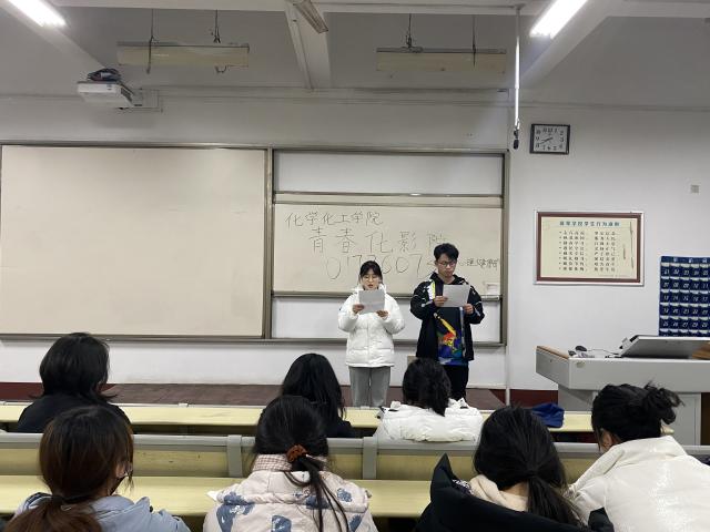 青春逢盛世,奋斗正当时。为帮助同学们提高对自己心中目标的坚毅和执着,丰富心理健康教育内容,提高大学生的心理健康水平及自我调适能力,12月18日,化学化工学院于4#C101举办“心中有光,向阳而生”青春化影院活动。