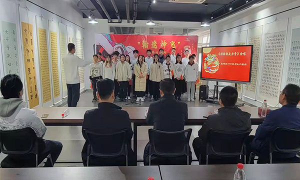 随后,演出开始,同学们浑厚激昂的朗诵,澎湃有力的合唱,灵动活泼的舞蹈以及婉转动听的歌曲与展厅中的作品交相辉映。在同学们几个精彩的演出后,方建光老师演唱了一首《弯弯的月亮》,整个活动达到了高潮。此外,本次活动还准备了抽奖环节,奖品包括各类书法用品、作品集以及“大奖”——书法系各位老师的作品。