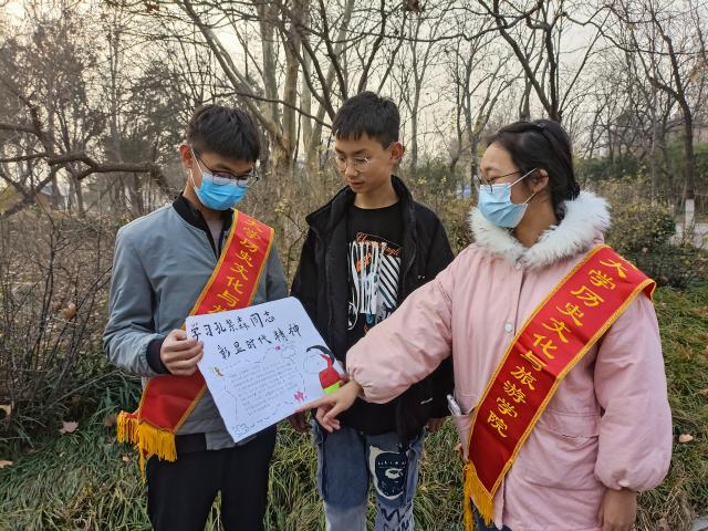 学习英雄事迹,弘扬时代精神。为宣传孔繁森同志的伟大事迹,加深人们对于孔繁森精神的理解,培养人们爱国爱党的家国情怀,12月31日,历史文化与旅游学院于聊城市东昌府区人民广场举办“学孔繁森同志,彰显时代精神”活动。