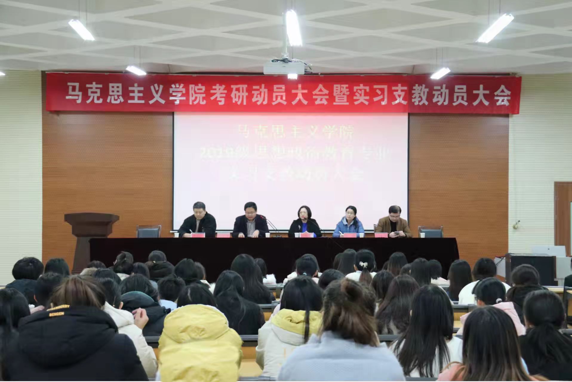 为帮助师范生提前了解教师行业,实现教育理论向教育实践的转化,积极响应支教的号召,1月10日,马克思主义学院于东校区6#C106召开考研暨实习支教动员大会。马克思主义学院党总支书记张华筠、院长刘子平、副院长华敏、辅导员李政一、教师刘琳琳、高庆涛、上届实习生代表张宝睿与全体2019级师范生参加此次动员大会。