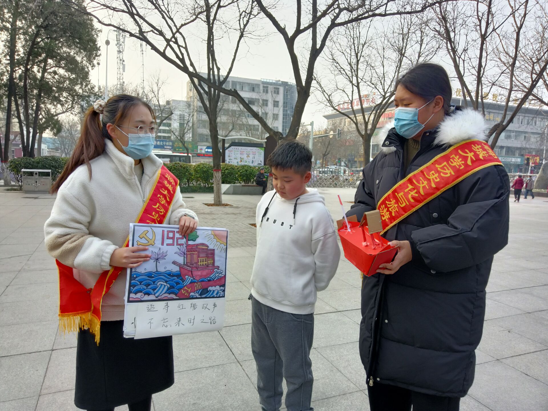 红船载千钧,征程行万里。为使大学生深入了解红船精神及背后的人物故事,提高大学生志愿者们的交流沟通能力,增强大学生的责任感与使命感,增加人民群众对党史的了解,弘扬社会主义核心价值观,1月11日历史文化与旅游学院于聊城市人民公园举办“追寻红船精神,不忘来时之路”活动。