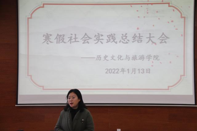 投身社会实践,实现青春价值。为对寒假社会实践活动进行总结,进一步激发大学生服务人民、服务社会的热情,1月13日,历史文化与旅游学院于6#A106举办寒假社会实践总结大会。团委书记李姮及部分学生会成员参加此次会议。