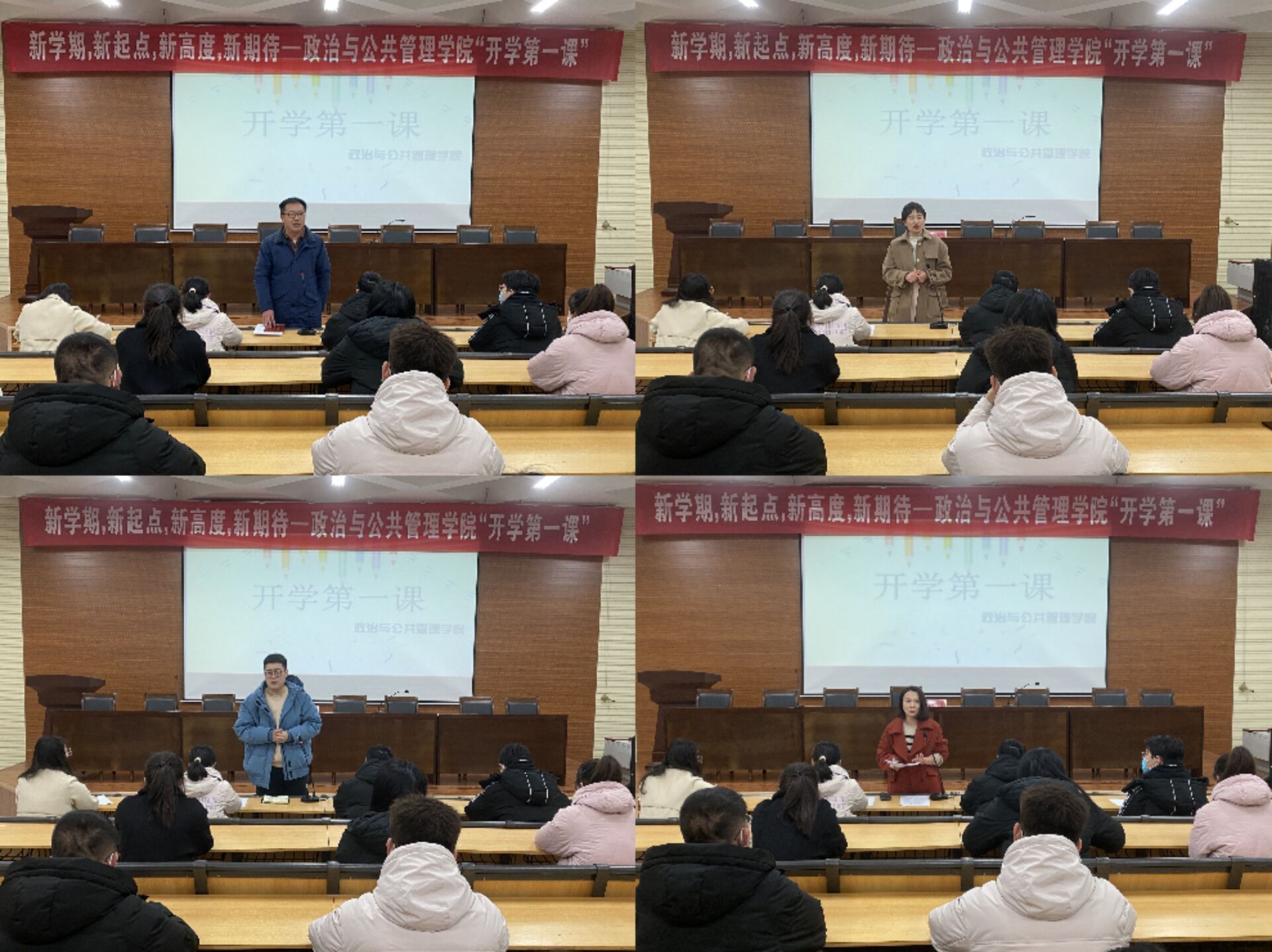 2月20日,政治与公共管理学院于东校区6#C106开展开学第一课,党委副书记乔华军带领辅导员徐娜、于进、陶珊珊提出新学期对于同学们的新要求与新愿望,对于政治与公共管理学院发展方向提供指导意见。