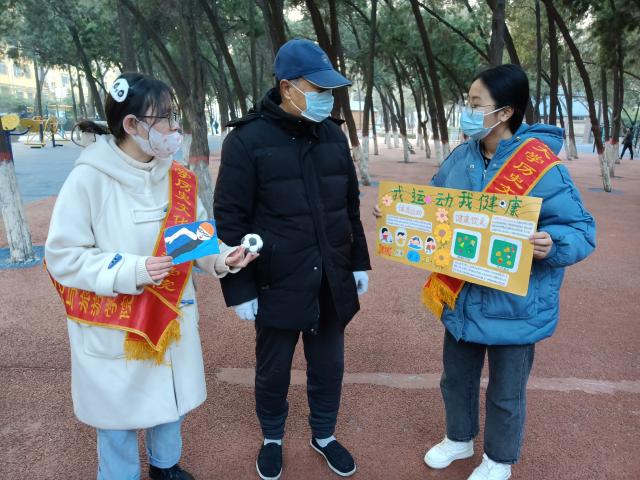 活动伊始,志愿者依托展板,以宣讲的方式向群众宣传全民运动的益处,鼓励他们多进行体育运动。志愿者讲解到,毛主席曾有言,“欲文明其精神,必先野蛮其体魄。”科学家们普遍认可运动对人们的身心健康有益体育对健康有各种好处,尤其是在年轻的时候,它可以促进人体的生长发育和机能的发展。经常参加体育锻炼不仅使锻炼者的注意、记忆、反应、思维和想象等能力得到提高,还可以使其情绪稳定、性格开朗、疲劳感下降等。此外,体育锻炼还可以提高锻炼者的团队意识和交流能力,促进人格的多维化发展。到 2020年底,我国经常参加锻炼的人数已经达到 4.35 亿。群众对此感到惊讶,若有所思。随后,志愿者们利用手工作品,引导群众认识和传承运动精神。众所周知,体育承载着国家强盛、民族振兴的梦想,关乎人民幸福,关乎民族未来。只要我们咬紧目标,发扬“为国争光、无私奉献、团结协作、顽强拼搏”的精神,我们就一定能在民族复兴新的赛道上续写新的篇章、创造新的辉煌。群众纷纷表示赞同,表示自己也要投身到运动潮流中去。活动最后,大学生志愿者与群众一同展望未来。我们将深刻把握体育强国梦与中国梦息息相关的定位,把体育事业融入实现“两个一百年”奋斗目标大格局中去谋划和推进,实现了全民运动尽在眼前。