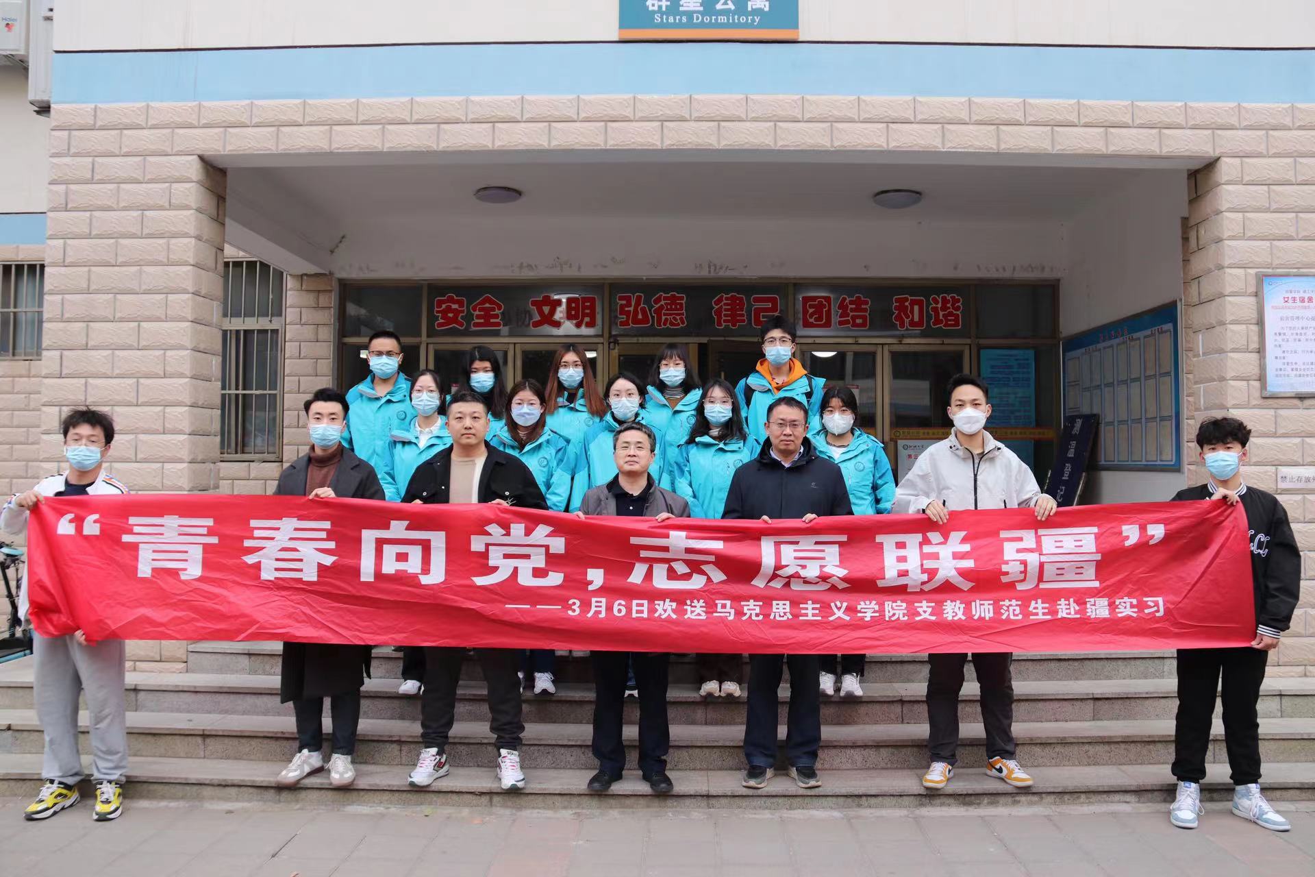 为践行为国育才的初心使命,提升边疆地区师资力量与人才培养水平,3月6日,马克思主义学院于东校区群星#20欢送师范生赴新疆实习支教,马克思主义学院党委书记张华筠,院长刘子平,党委副书记、副院长范华亮,辅导员李政一到场为同学们送行。