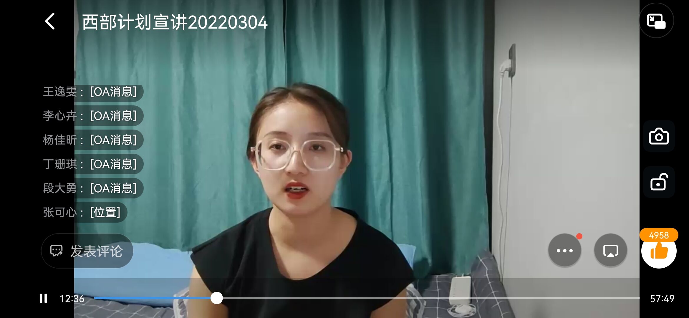 青年怀壮志,立功正当时。此次宣讲会采用钉钉线上直播的方式,主讲人杨蕾就参与西部计划的原因、工作环境、个人收获三个方面详细讲述西部计划的相关政策和内容。她提到,如今是脱贫攻坚到乡村振兴的过渡时期,大学生支援西部不仅是积极响应国家政策、实现个人理想的平台,也是为祖国建设贡献青春力量的途径。杨蕾从当地风景及生活感受出发,向同学们介绍了她在支教地的日常工作,以切身体验向同学们展现西部的发展和变化。此外,杨蕾结合自身工作经历,为同学们提出调整自身心态、积极面对学习、认真对待工作三条建议,并针对同学们的不同问题对西部计划的政策再次进行答疑解惑。活动临近尾声,同学们纷纷表示深受触动,立志将小我融入大我,努力在祖国的西部书写别样青春。