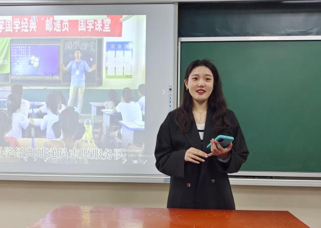 为弘扬国学经典,汲取前进动力,3月11日,聊城大学国学经典邮递员社会实践队在文学院各班级开展纳新宣讲。张志琪、苏比旦担任主讲人,2021级部分同学积极参与其中。