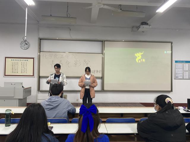 博在青春,舞出精彩。为帮助同学们提高对自己心中目标的坚毅和执着,丰富心理健康教育内容,提高大学生的心理健康水平及自我调适能力,使同学们知道只要学而得法,终可摆脱贫困的阴霾,活出自己,成就自己。3月13日,化学化工学院于4#C103举办“博在青春,舞出精彩”青春化影院活动。
