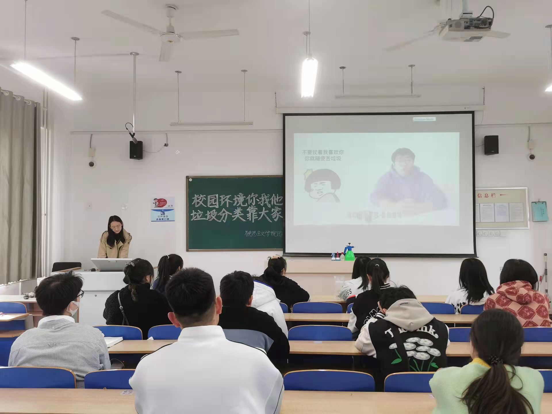 为了营造良好的校园环境,帮助同学们养成垃圾分类的习惯,增强垃圾分类回收的意识。3月15日,马克思主义学院于东校区 6#A202举办“校园环境你我他,垃圾分类靠大家”活动。张钰淇担任主讲人。