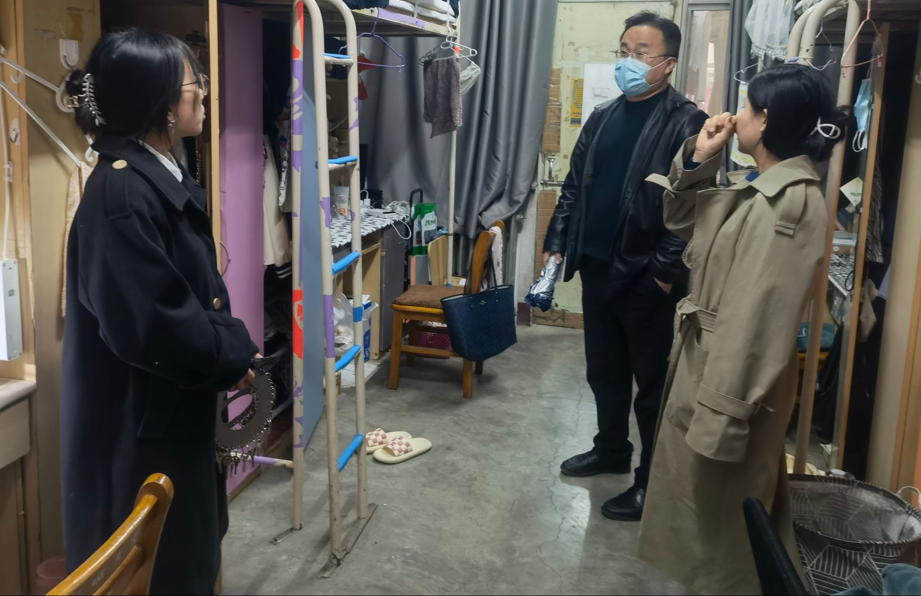 严防细守战疫情,群力担当筑堡垒。疫情态势严峻,学院第一时间成立专项小组,在疫情期间对本硕学生宿舍进行走访慰问。赵勇对参与走访的辅导员做出强调,他提到,开展学生公寓实地走访和切实关怀是及时了解同学们思想状况和实际需要的重要举措,应切实解决学生所需并进一步宣传和讲解疫情防控知识。在走访中,赵勇、各年级辅导员与同学们进行亲切交流,叮嘱同学们要减少外出、佩戴口罩,严格遵守学校防疫管理规定,时刻做好防护,保持好寝室环境的干净整洁。此外,在引导学生加强防控意识的同时,逐一排查宿舍安全隐患,并在学习问题上给予指导,确保线上学习效果。同时,李彦、刘妙祎、孟祥栋、王隽玮四位年级辅导员召开线上云班会,就疫情防控、错峰就餐、封闭管理、体温打卡等多个方面进行着重强调,阐述当下疫情形势的严峻性,并表示学院将竭尽全力为同学们做好服务,切实从严从紧、抓细抓实常态化疫情防控工作。