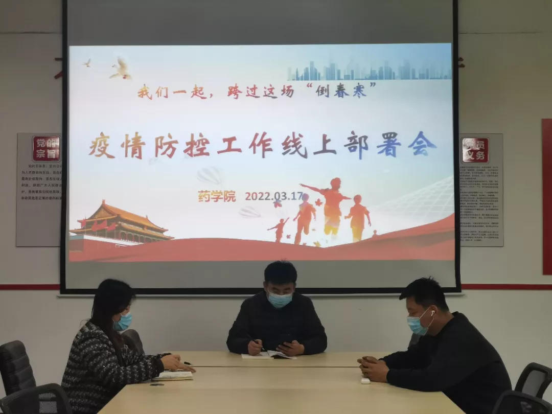 3月17日下午,药学院于2#109召开疫情防控工作线上部署会。学院党委副书记、副院长李永新出席会议并讲话,班主任岳琳琳及全体班长、团支部书记等主要学生干部参加会议。会议由辅导员王瑶主持。